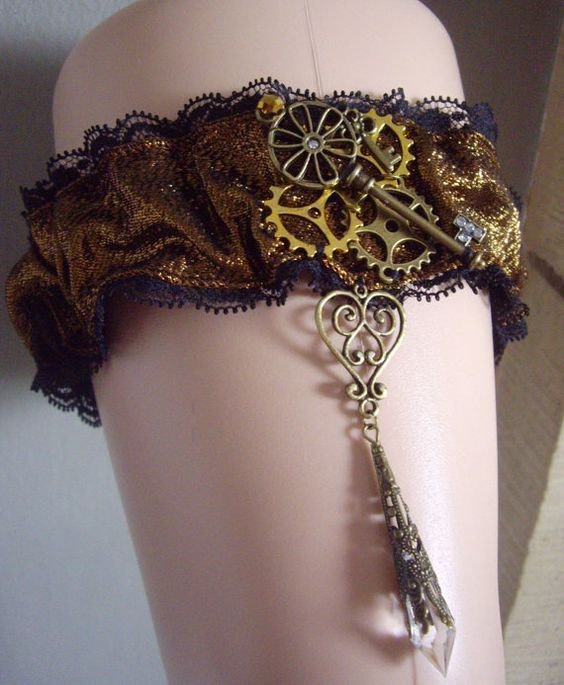 Óraműves alkatrészekből, fogaskerekekből készültek ezek a kiegészítők. (Igen, a harisnyakötőn is van.) 😀